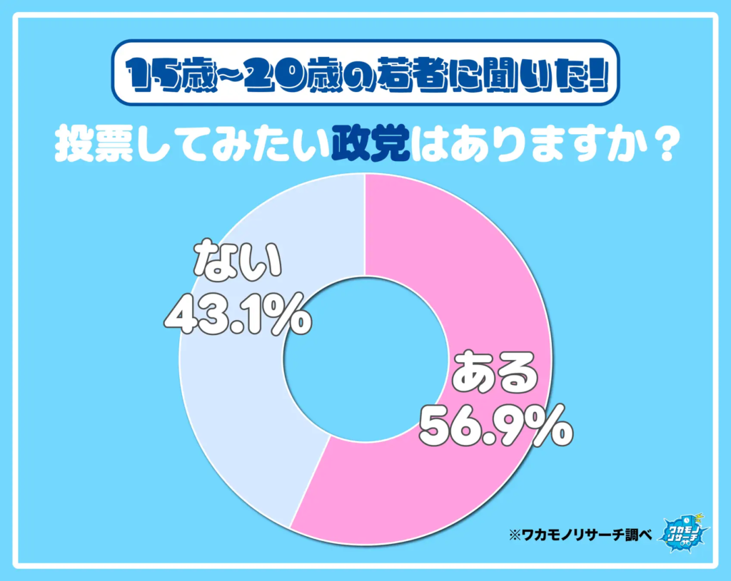 【15歳~20歳の若者56.9%が「投票してみたい政党がある」と回答!】