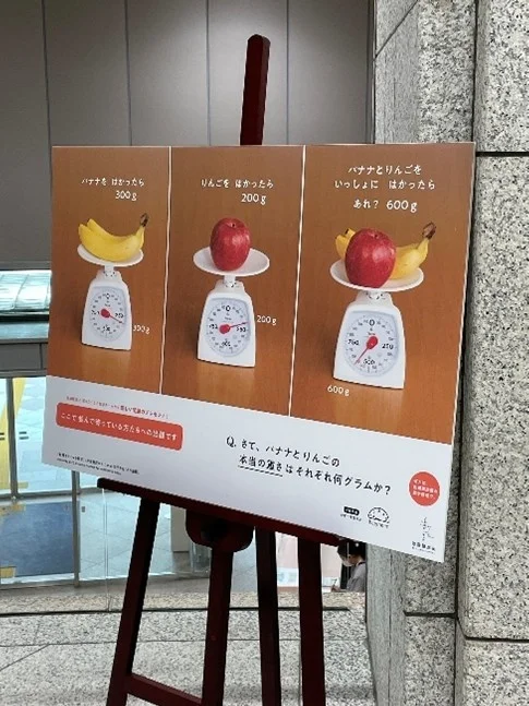 展示の後半にある「actualな数学」コーナーでは、映像と実物による問題が提示され、ここでも「どう考えるんだろう?」と一緒に来た人同士で話す姿が見られました。