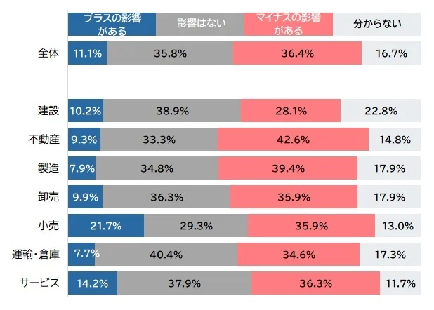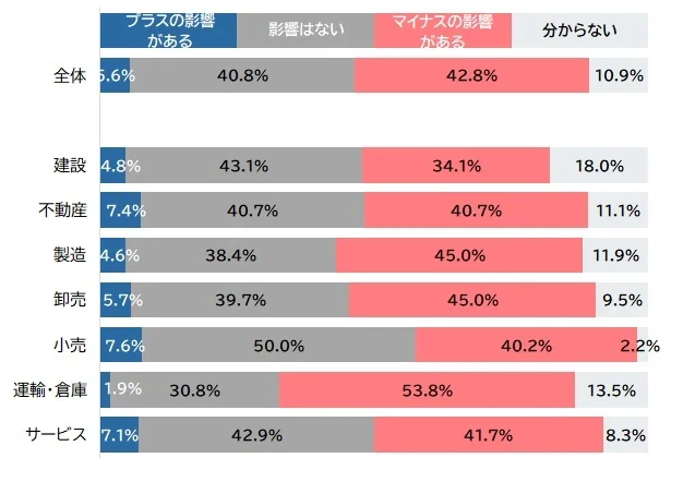 旅客運送業など『運輸・倉庫』は5割超でマイナス、今後は『不動産』のマイナス割合が突出