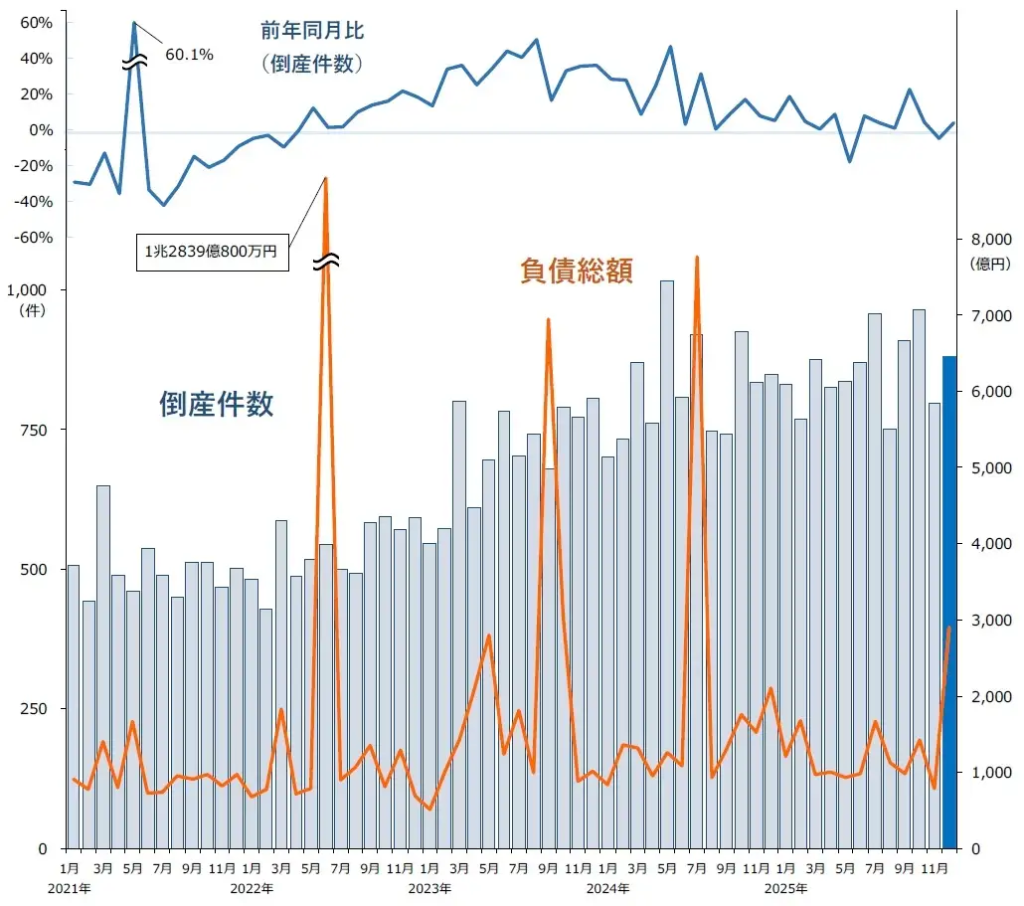帝国データバンク、2025年12月倒産件数を集計・分析(2026年1月情報)
